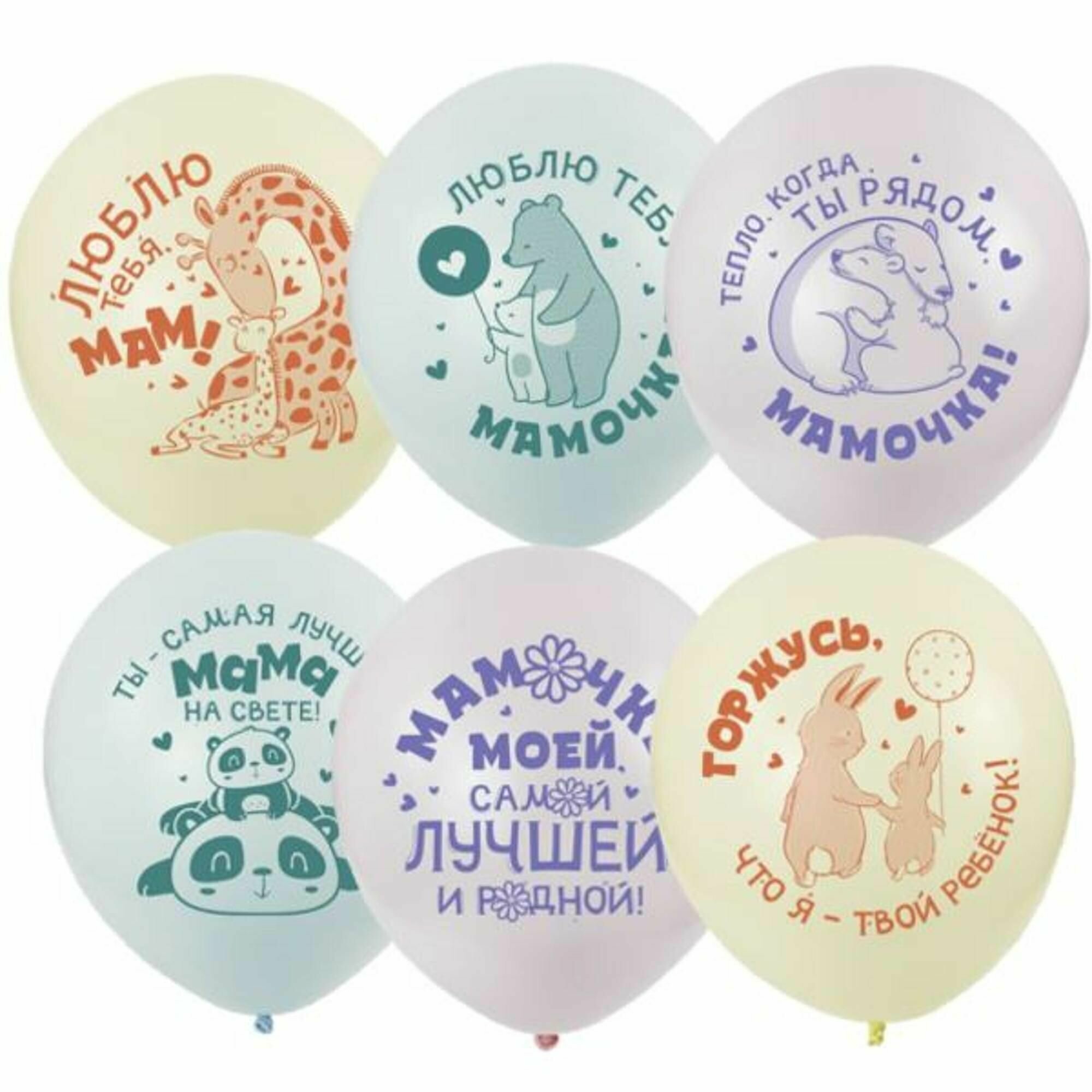 Набор воздушных латексных шариков для поздравления мамы с надписями и принтами в виде животных. Красивые шары нежной пастельной палитры украсят фотозону или актовый зал на утреннике, посвященном Дню матери или 8 марта в детском саду. Изготовлены из прочного и эластичного латекса. Размер: 12"/30см. В упаковке 5 штук. Производитель: Latex Occidental. Бренд: Globos Payaso (Глобос Паясо). Шары маме, шары на день рождения, шарики на день рождения, шары на день матери