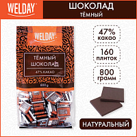 Шоколад порционный WELDAY "Тёмный 47%", 800 г (160 плиток по 5 г), пакет