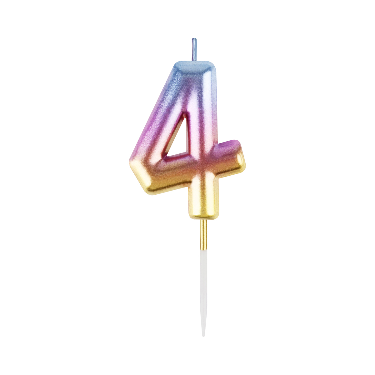 Свеча для торта с держателем MESHU "Цифра "4", 6см, градиент, блистер