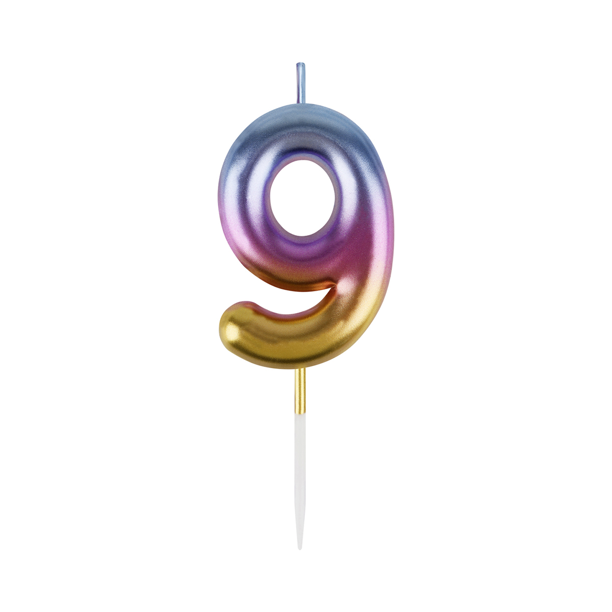 Свеча для торта с держателем MESHU "Цифра "9", 6см, градиент, блистер