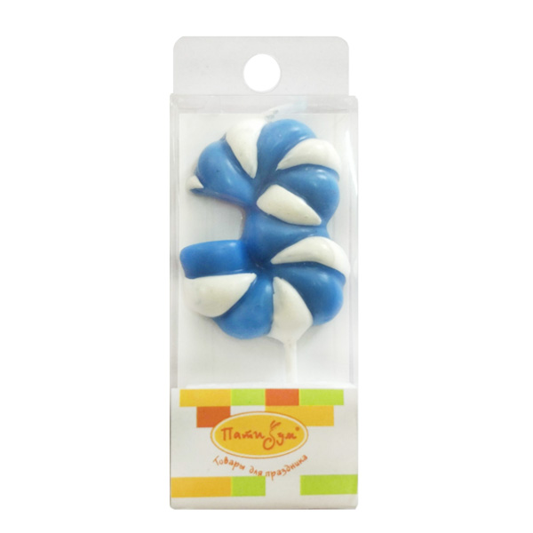 Свеча Цифра 3 Леденец голубой 4,8см