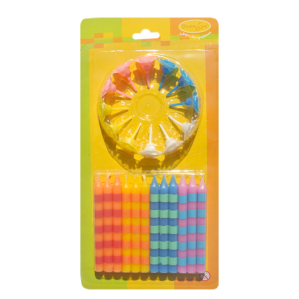 Свечи В полоску 12шт с держателями 6см