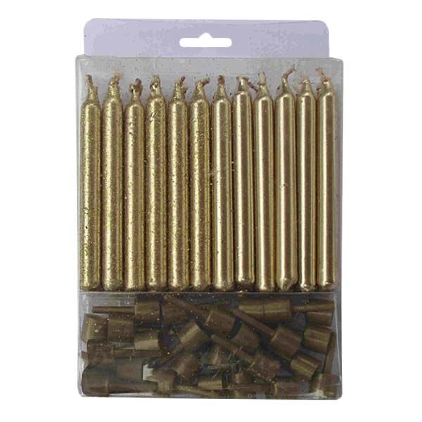 Свечи Золотые с блестками 24(12+12)шт с держателями 6см