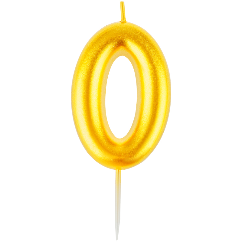 Свеча для торта с держателем MESHU "Цифра 0", 6см, золотая, блистер