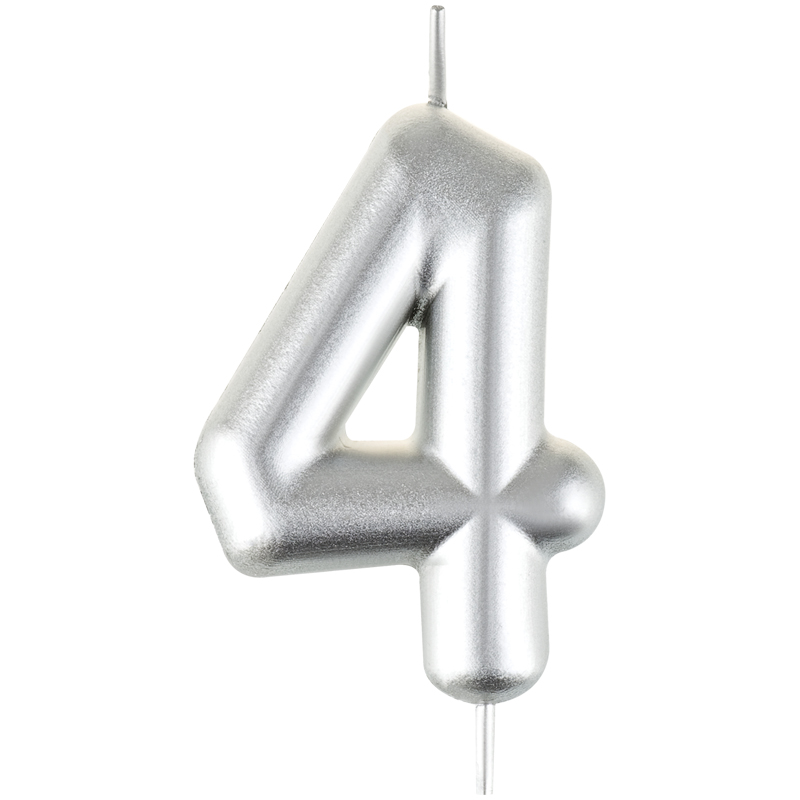 Свеча для торта с держателем MESHU "Цифра 4", 6см, серебряная, блистер