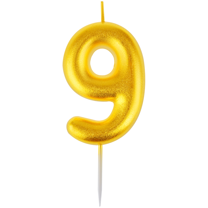 Свеча для торта с держателем MESHU "Цифра 9", 6см, золотая, блистер