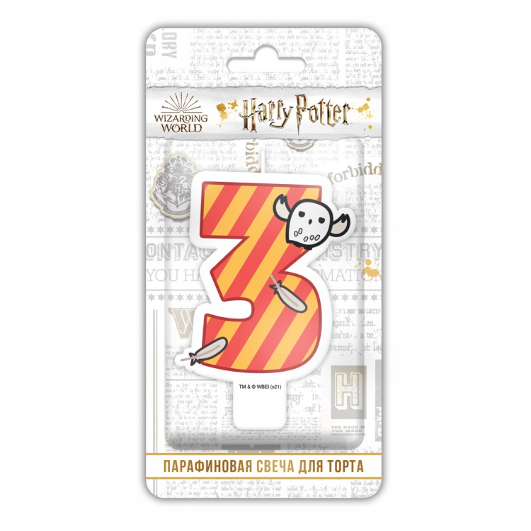 Harry Potter. Парафиновая свеча в торт (цифра 3 с рисунком) в блистере (чиби)