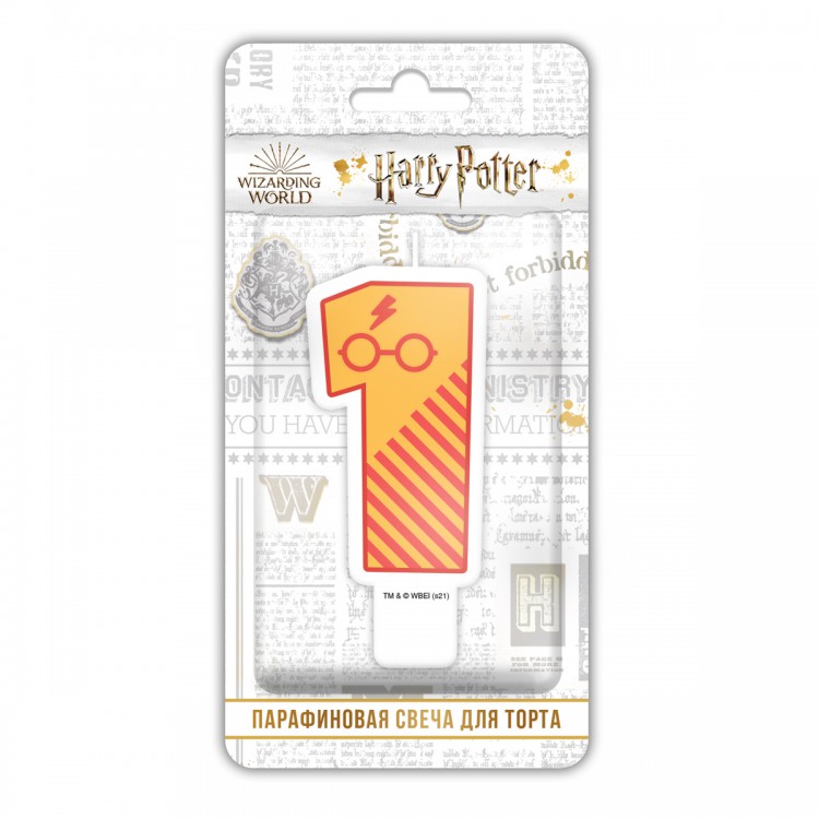 Harry Potter. Парафиновая свеча в торт (цифра 1 с рисунком) в блистере (чиби)