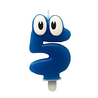 Свеча Цифра 5 Синяя С глазками 6,5см