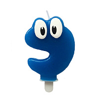 Свеча Цифра 9 Синяя С глазками 6,5см
