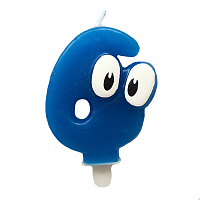 Свеча Цифра 6 Синяя С глазками 6,5см
