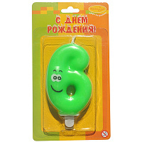 Свеча Цифра 6 Улыбка цветная 6,5см