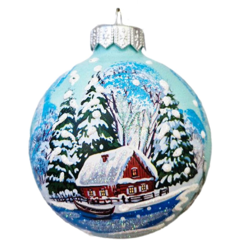 Шар елочный Домик на берегу 2, 80 мм., в подарочной коробке, НГ, КУ-80-244041
