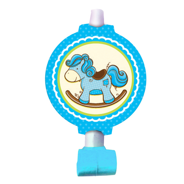 Музыкальная игрушка - язычок-гудок. Игрушка разворачивается при направленном потоке воздуха и издает характерный звук. Данная игрушка является карнавальным аксессуаром в праздничной коллекции одноразовой посуды Лошадка Малыш голубая. В упаковке содержится шесть язычков-гудков одного дизайна.