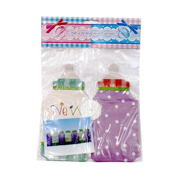 Бумажное украшение в виде гирлянды из детских бутылочек для праздника в честь рождения ребенка. Также такими гирляндами можно украсить машину и выход из роддома.