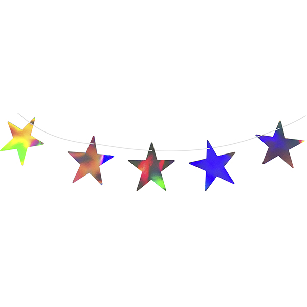 Яркие голографические звезды для по-настоящему космической вечеринки! Длина гирлянды - 2 метра.