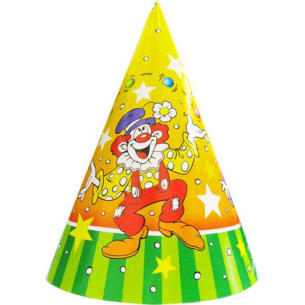 Колпачок из плотного картона - карнавальный головной убор. В упаковке содержиться шесть карнавальных колпачков одного дизайна.