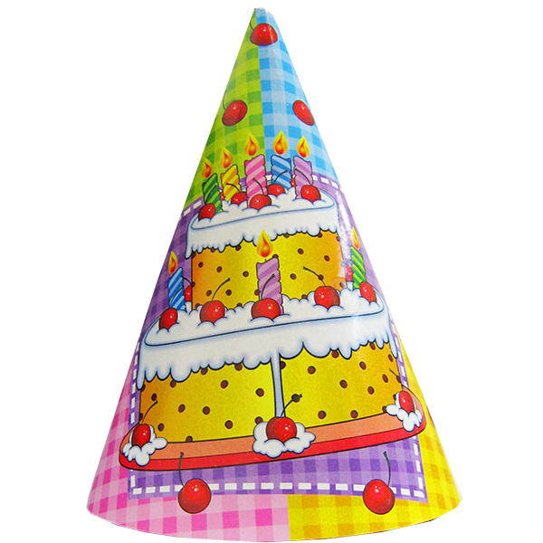 Колпачок из плотного картона - карнавальный головной убор. В упаковке содержиться шесть карнавальных колпачков одного дизайна.