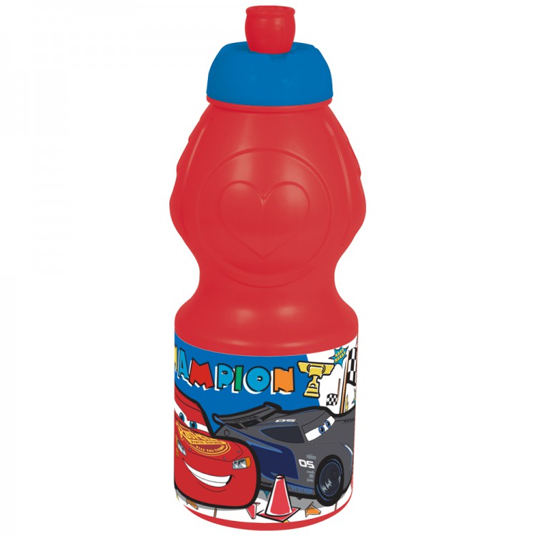 Спортивная детская бутылочка для воды (объём 400 мл) с изображением персонажей из мультфильма "Тачки". Красная бутылка для воды имеет фигурную форму и рельефную поверхность: такую бутылочку удобно держать в руке, она легко помещается в карман школьного ранца или спортивную сумку. Бутылка для воды спортивная детская отличается надежностью и герметичностью, имеет выдвижной поильник: ребенку будет удобно пить воду в дороге, на прогулке и во время спортивной тренировки. Бутылка для воды многоразовая станет идеальным подарком для мальчика, которому нравится мультфильм "Тачки". Бутылочка детская изготовлена из пищевого пластика.