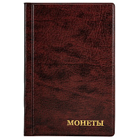 Альбом нумизмата для 120 монет, 125х175 мм, ПВХ, коричневый, STAFF, 238074