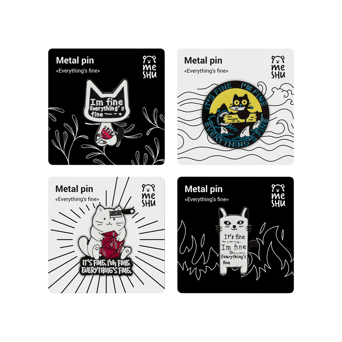 Набор металлических значков MESHU "Everythings fine", эмаль, 4шт, картонная подложка, европодвес