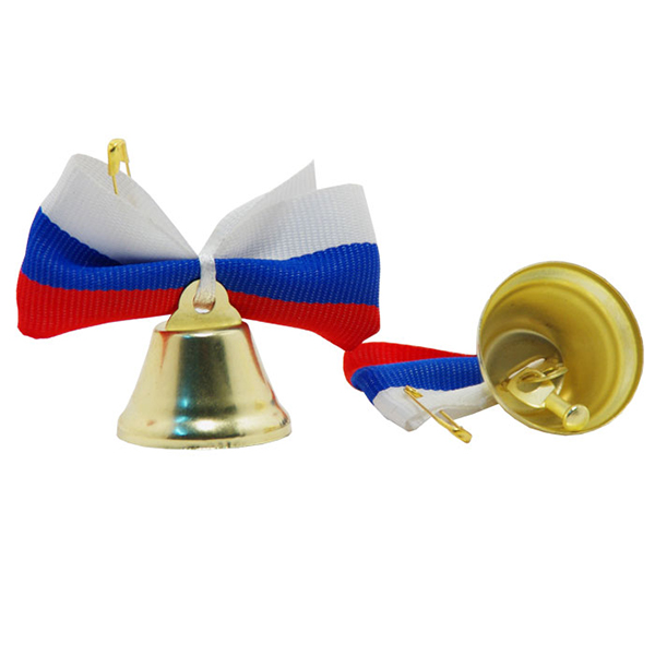 Колокольчик для выпускника с лентой триколор и булавкой D25 мм 10шт/уп