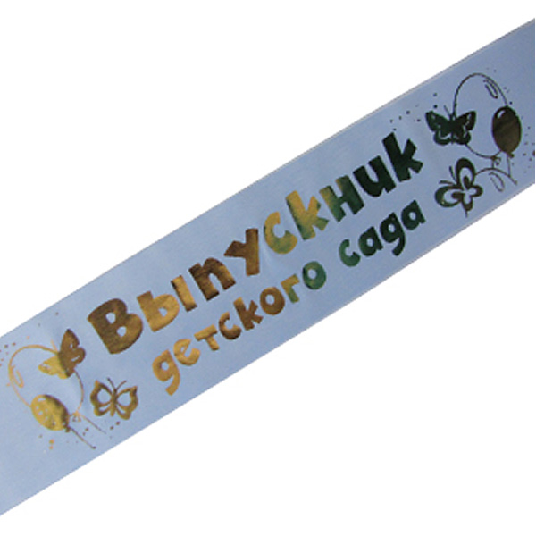 Лента Выпускник детского сада голубая шелк 150 см х10 см 10 шт/уп