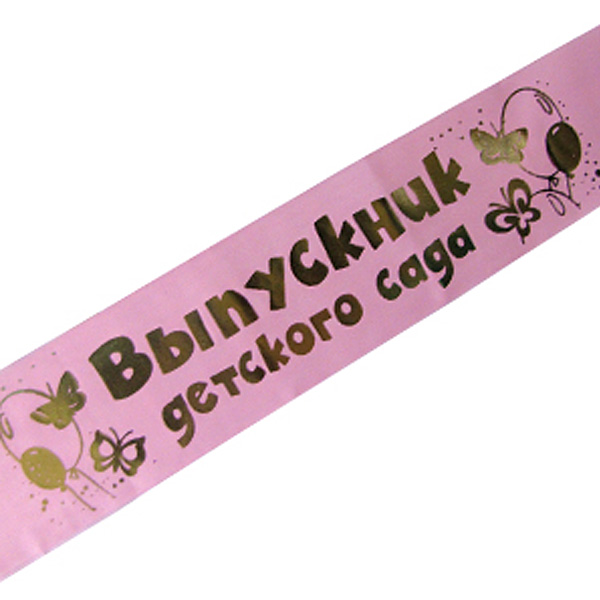 Лента Выпускник детского сада розовая шелк 150 см х10 см 10 шт/уп