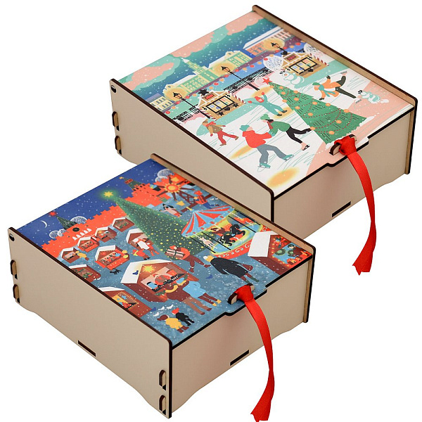 Шкатулка для чайных пакетиков "Зимние города". Размер 18х15,5х7,5см. 2 дизайна. Материал: Дерево (ХДФ)