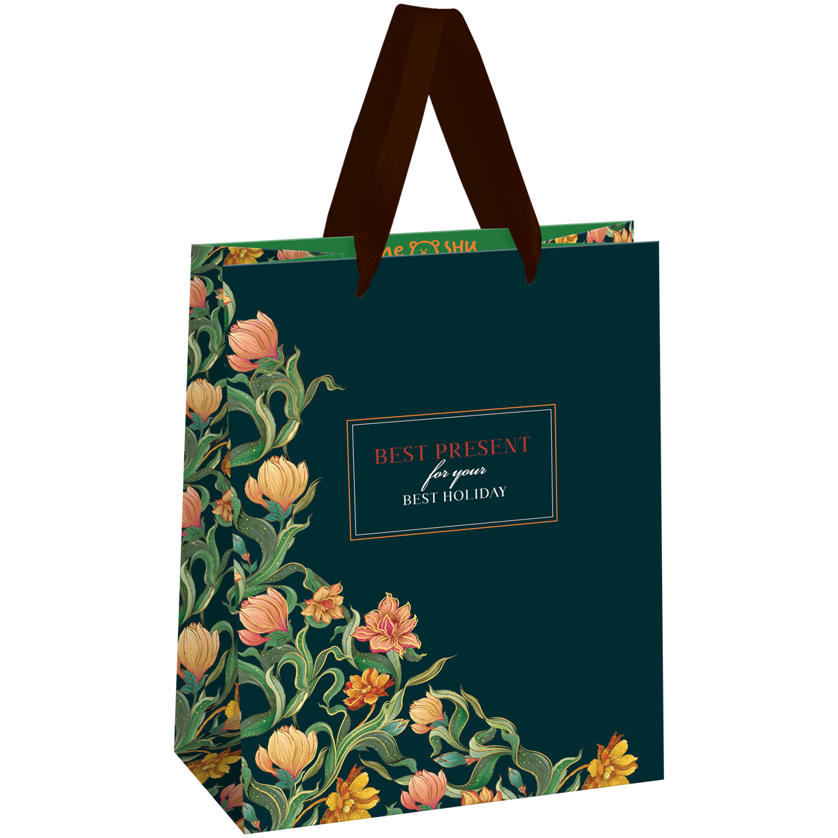 Пакет подарочный 18*23*10см MESHU "Grace", фольга, блестки, матовая ламинация