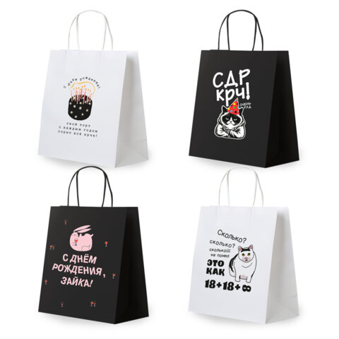 Подарочный пакет Funny Mix - отличное решение для упаковки любого презента, которое позволит с легкостью и со вкусом оформить выбранный подарок. Подарочный пакет – это не просто упаковка, это ваш вклад в создание незабываемых воспоминаний! Подарочный пакет из крафтовой бумаги – идеальное решение для вашего праздника! Благодаря плотности 150 г/м2, пакет надежно удерживает свою форму и защищает содержимое, сохраняя ваш подарок в идеальном состоянии.Яркие и оригинальные дизайны, доступные в ассортименте из четырех вариантов, придадут вашему подарку особый шарм и настроение.Оптимальный размер - 26х13х32 см, идеально подходит для различных подарков – от маленького сюрприза до крупного презента. Удобные плетеные ручки обеспечивают комфортное ношение, добавляя элегантности и стиля вашему подарку.