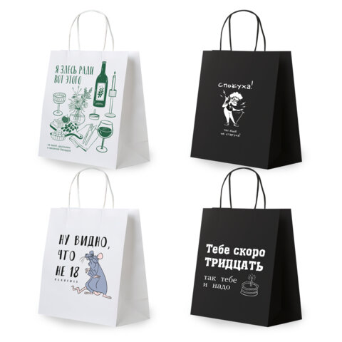 Подарочный пакет Woman Funny Notes- отличное решение для упаковки любого презента, которое позволит с легкостью и со вкусом оформить выбранный подарок. Подарочный пакет – это не просто упаковка, это ваш вклад в создание незабываемых воспоминаний! Подарочный пакет из крафтовой бумаги – идеальное решение для вашего праздника! Благодаря плотности 150 г/м2, пакет надежно удерживает свою форму и защищает содержимое, сохраняя ваш подарок в идеальном состоянии.Яркие и оригинальные дизайны, доступные в ассортименте из четырех вариантов, придадут вашему подарку особый шарм и настроение.Оптимальный размер - 26х13х32 см, идеально подходит для различных подарков – от маленького сюрприза до крупного презента. Удобные плетеные ручки обеспечивают комфортное ношение, добавляя элегантности и стиля вашему подарку.