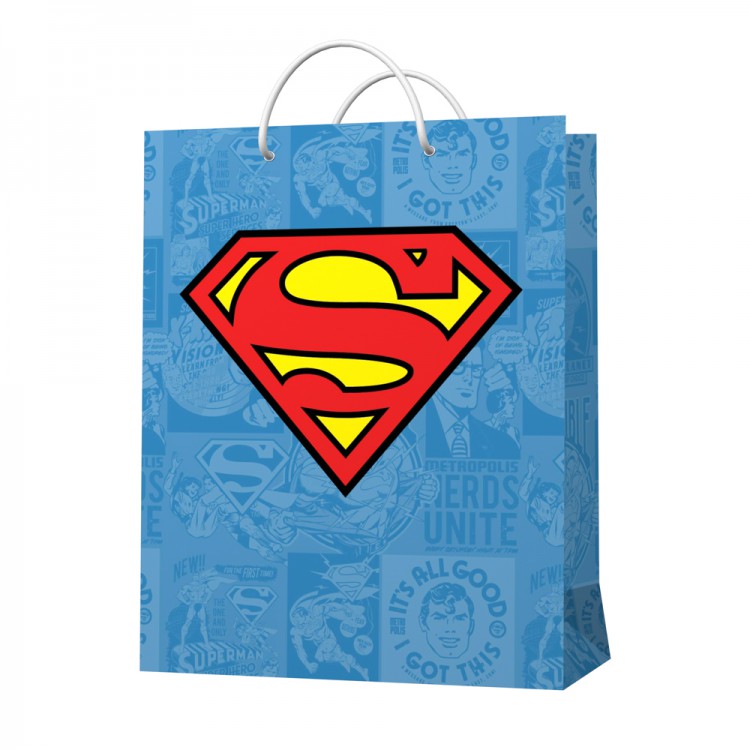 Пакет подарочный большой Superman (голубой с лого), 335*406*155 мм.