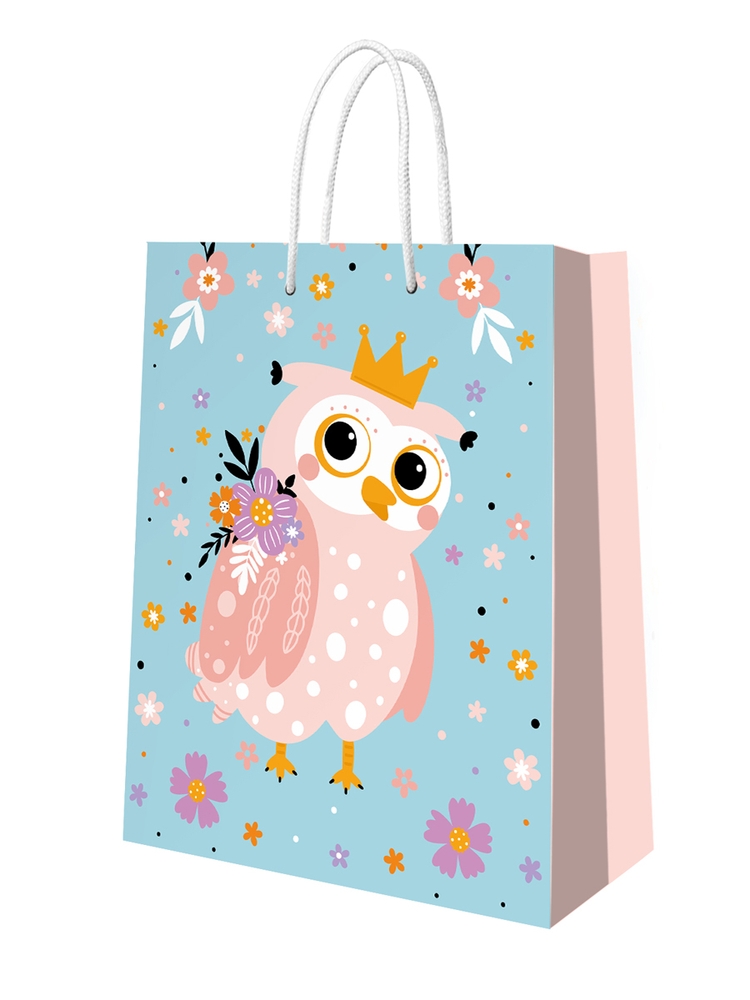 Большой подарочный пакет «Совушка» размером 100.00мм/227.00мм/180.00мм создан для любительниц милых совушек! Подарочный пакет подойдет для упаковки подарков детям и взрослым на День Рождения, Новый год, и 8 марта. Пакет гармонично дополнит подарки из нашего магазина, поднимет настроение и сделает праздник запоминающимся. Подарочный пакет отличается вместительностью, удобными ручками, ярким дизайном и качественной мелованной бумагой с ламинацией.