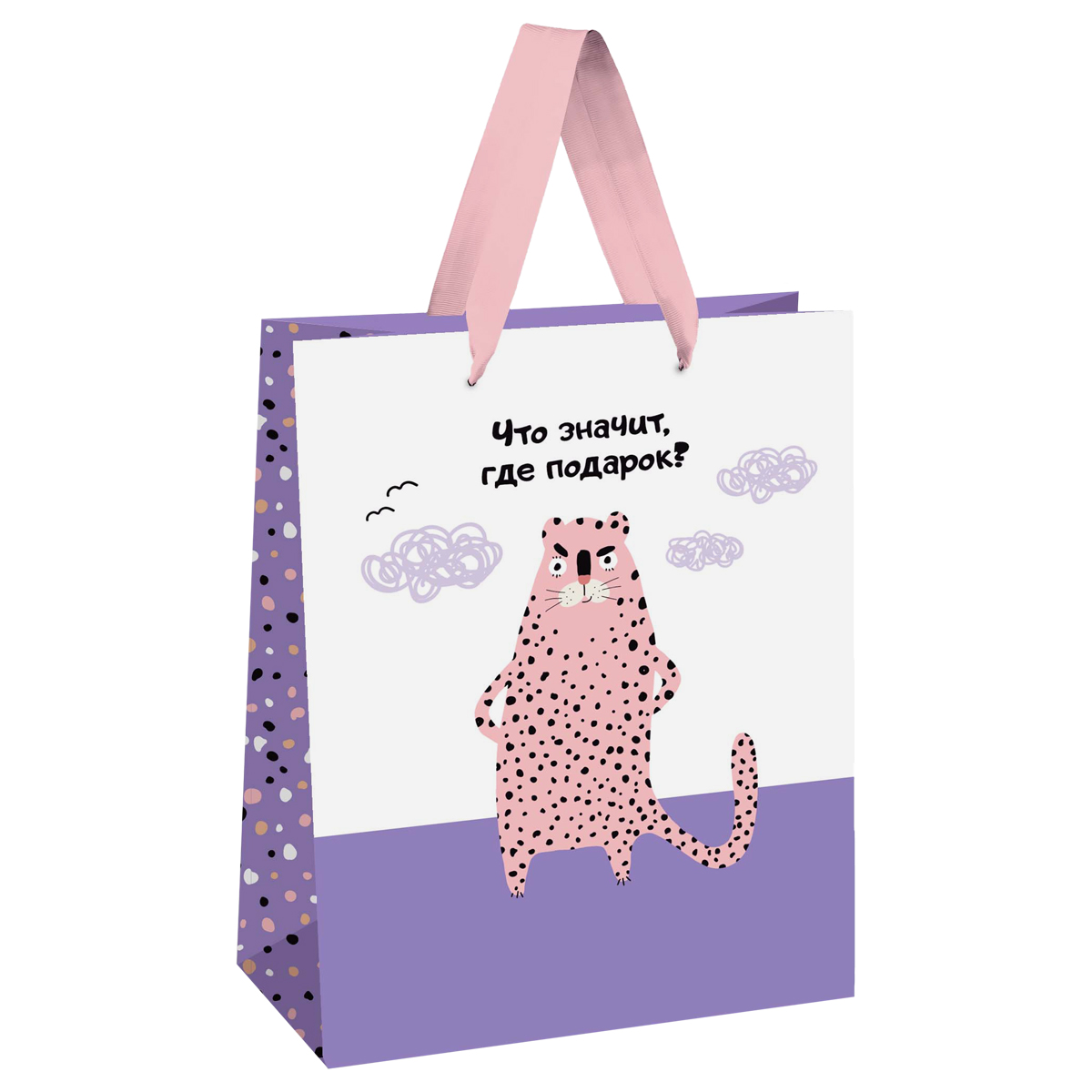 Пакет подарочный 18*23*10см MESHU "Что значит, где подарок", выборочный лак, матовая ламинация