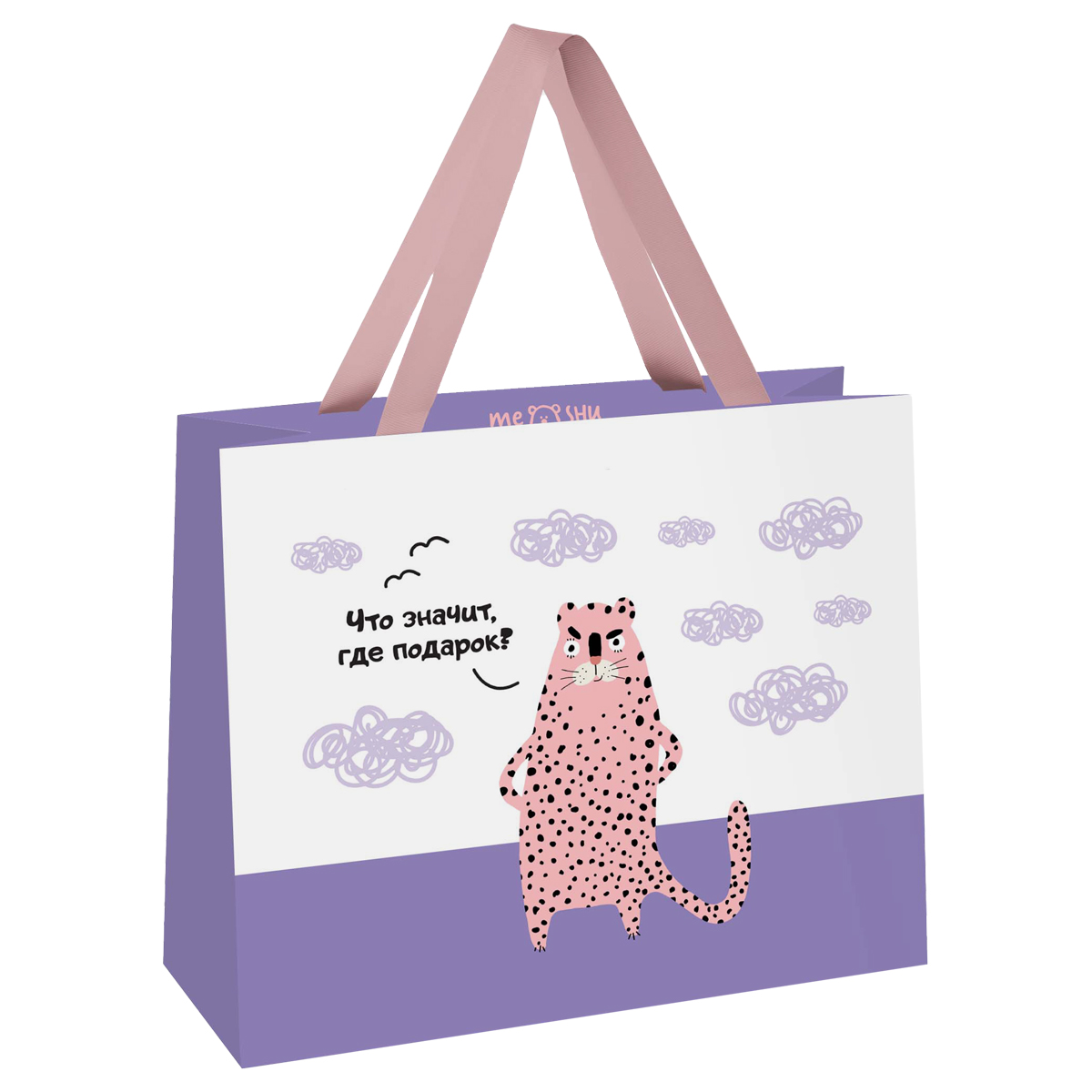 Пакет подарочный 32*26*12см MESHU "Что значит, где подарок", выборочный лак, матовая ламинация
