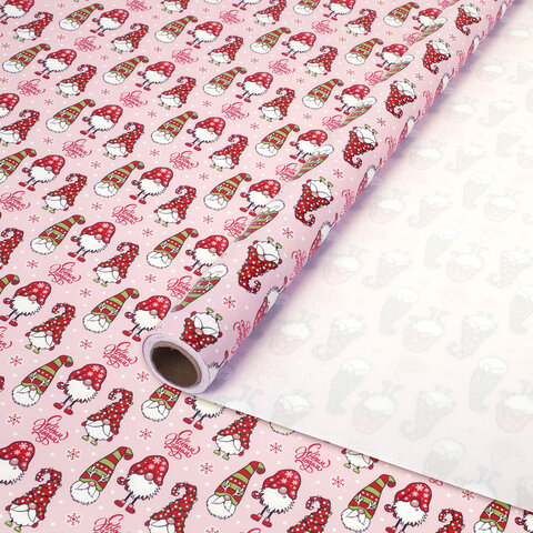Бумага упаковочная мелованная BIG SIZE новогодняя "Гномики", 0,7х10 м, ЗОЛОТАЯ СКАЗКА, 592615