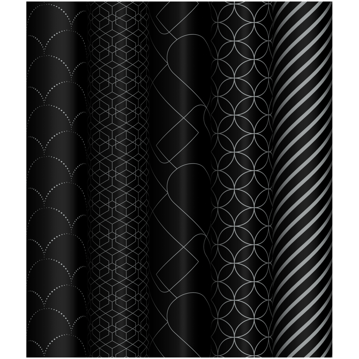Упаковочная бумага глянц. 70*100см, MESHU "Pattern on black", 80г/м2, ассорти 5 дизайнов
