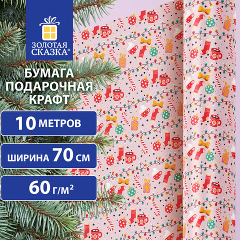 Новогодняя упаковочная бумага "Cosy XMAS" ЗОЛОТАЯ СКАЗКА отлично подходит для упаковки подарков, а также для рукоделия, декора и других дизайнерских решений. Упаковочная бумага – отличный способ придать особый статус подарку, а также ее можно использовать в творчестве для различных поделок, оригами, скрапбукинга. Благодаря большому рулону длиной 10 м и шириной 70 см вы сможете избежать проблемы с упаковкой большого количества подарков разного размера и формы. Представляет собой мелованную бумагу плотностью 60 г/м2 с новогодним принтом. Рулон надежно упакован в специальный картонный тубус, чтобы избежать всякого рода повреждений или замятий бумаги в процессе транспортировки.