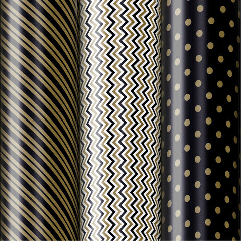 Бумага упаковочная мелованная НАБОР 3 шт., "Golden Pattern", 70х100 см, 3 дизайна, ЗОЛОТАЯ СКАЗКА, 592062