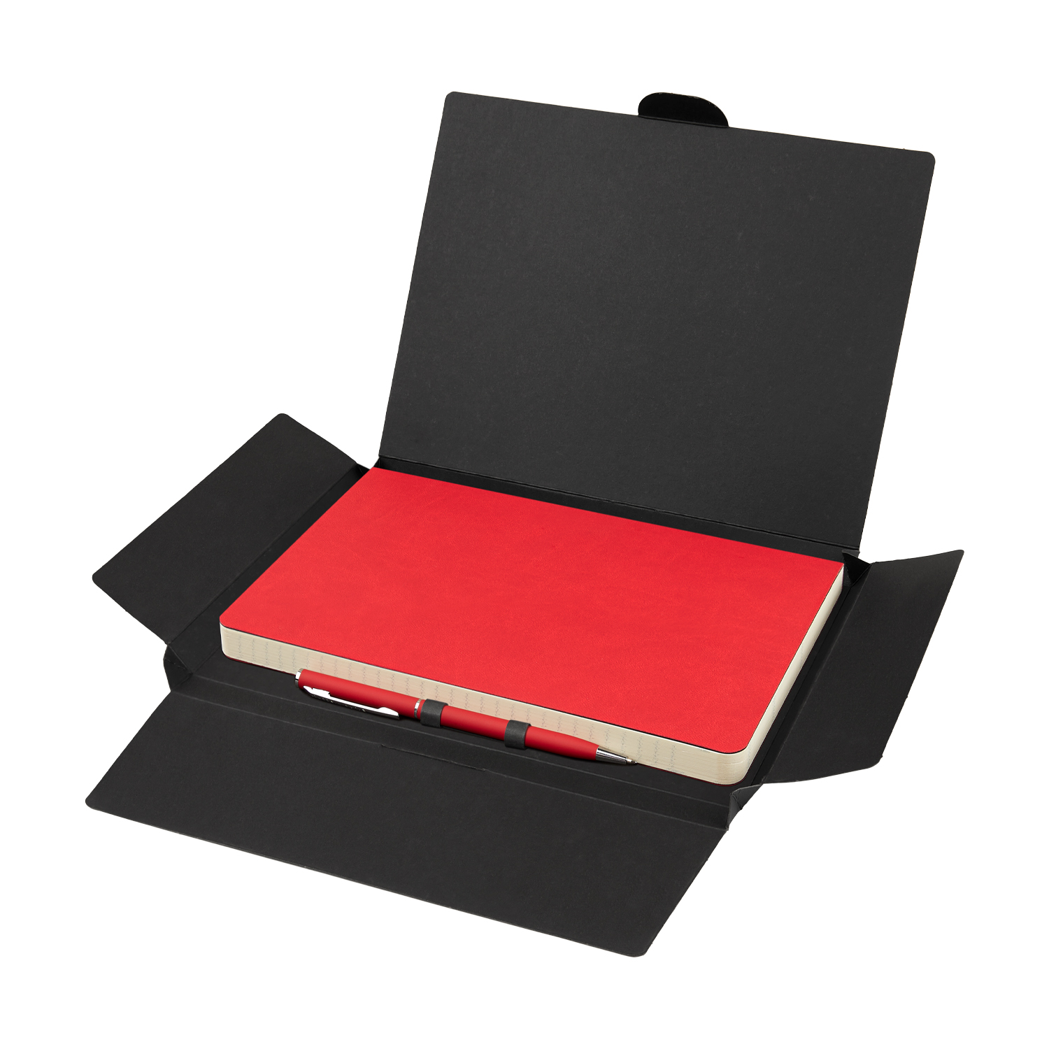НАБОР ПОД ПЕРСОНАЛИЗАЦИЮ ЕЖЕДНЕВНИК А5 "MEGAPOLIS VELVET" FLEX И РУЧКА "PALERMO" (красный)