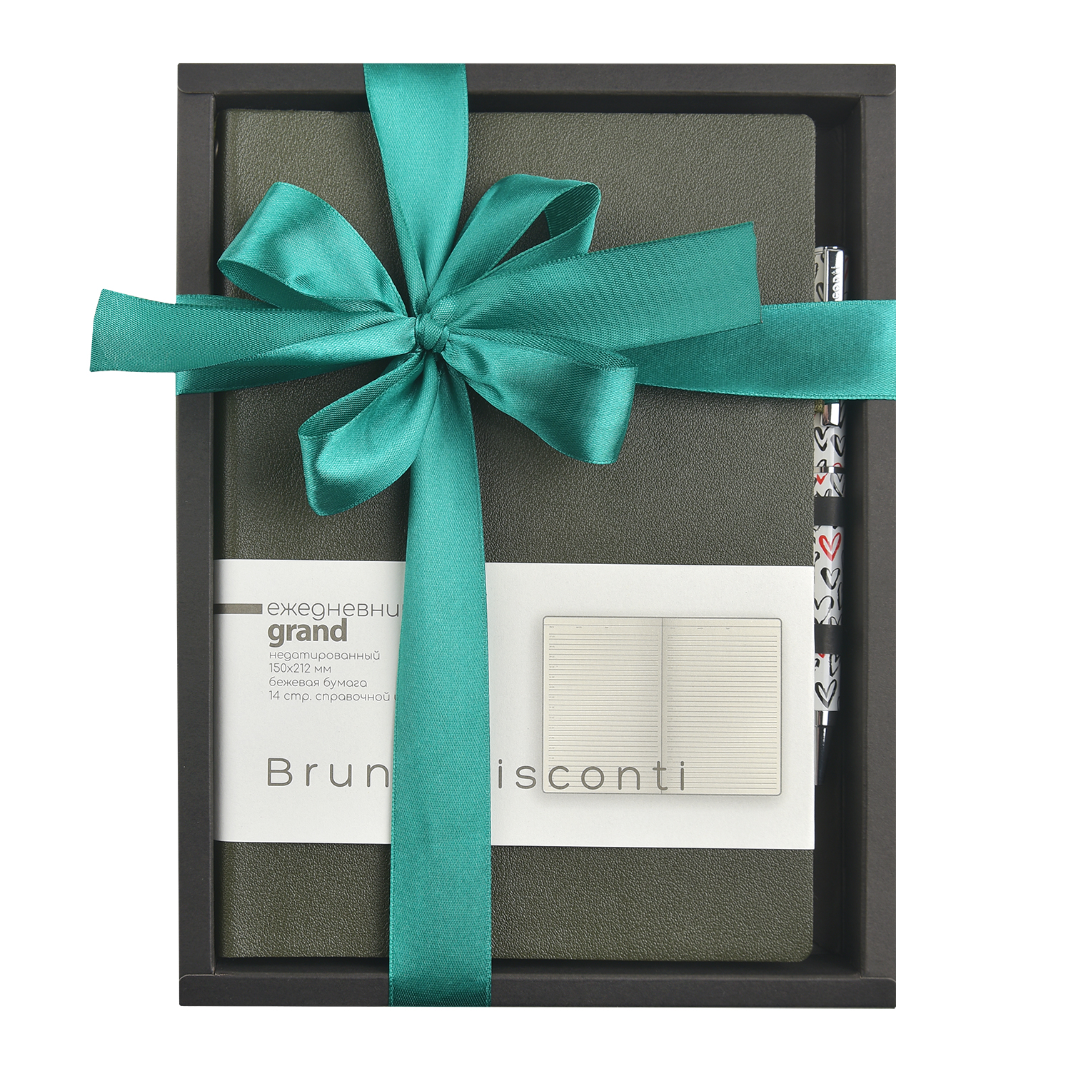 НАБОР ПОДАРОЧНЫЙ А5 "GRAND" (ТЕМНО-ЗЕЛЕНЫЙ ЕЖЕДНЕВНИК И МЕТАЛЛ. РУЧКА)
