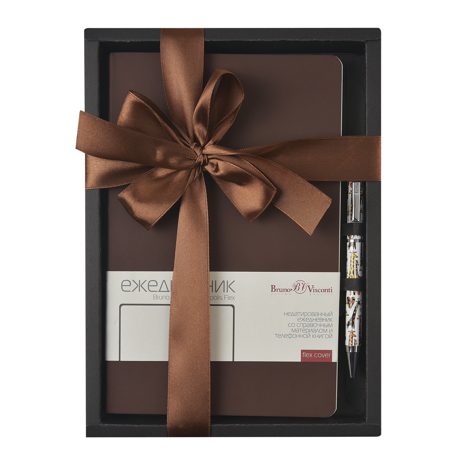НАБОР ПОДАРОЧНЫЙ А5 "MEGAPOLIS VELVET" FLEX (КОРИЧНЕВЫЙ ЕЖЕДНЕВНИК И МЕТАЛЛ. РУЧКА)