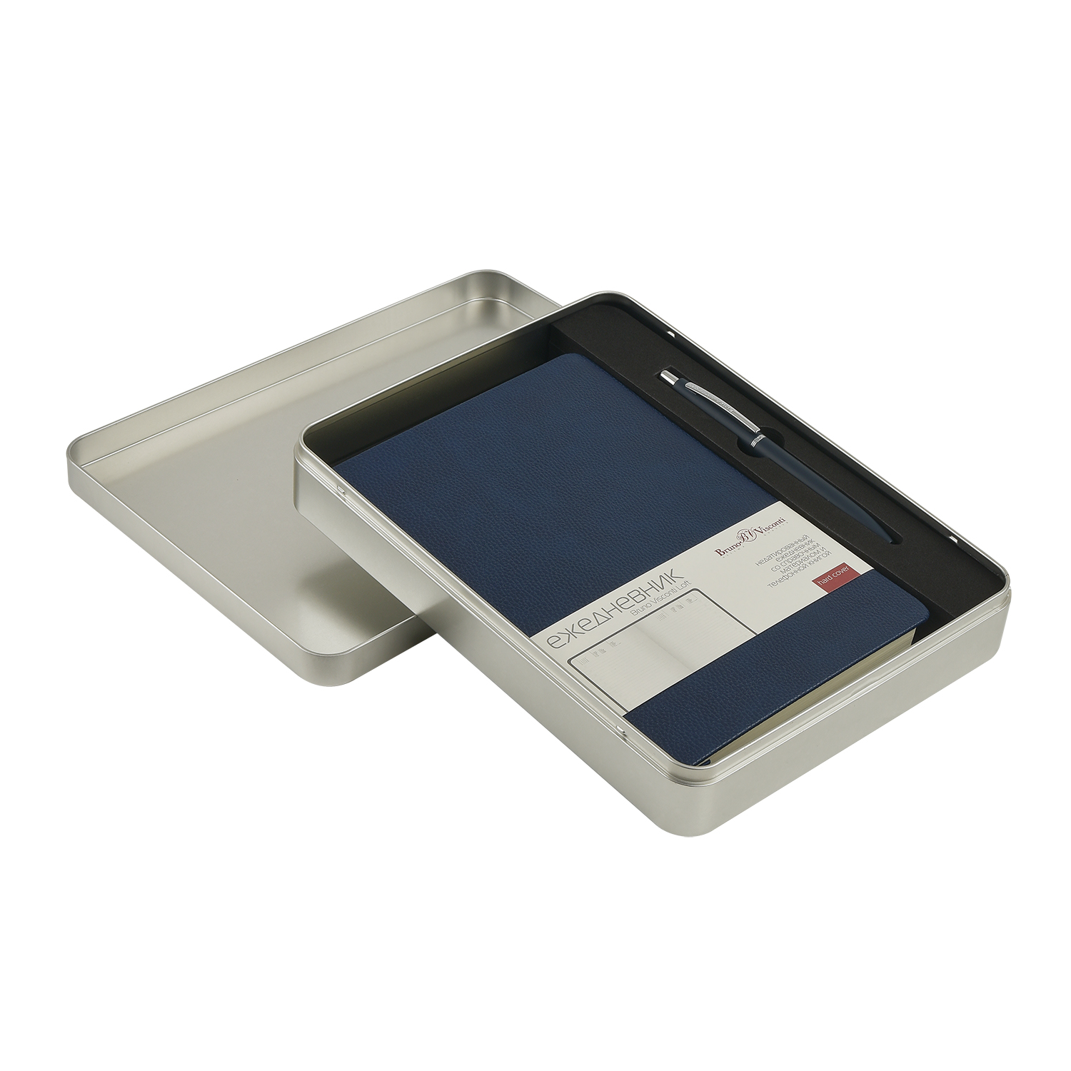 НАБОР ПОДАРОЧНЫЙ ЕЖЕДНЕВНИК А5"MEGAPOLIS LOFT"(ТЕМНО-СИНИЙ) И РУЧКА"SAN REMO"В СЕРЕБР.МЕТАЛ.КОРОБКЕ