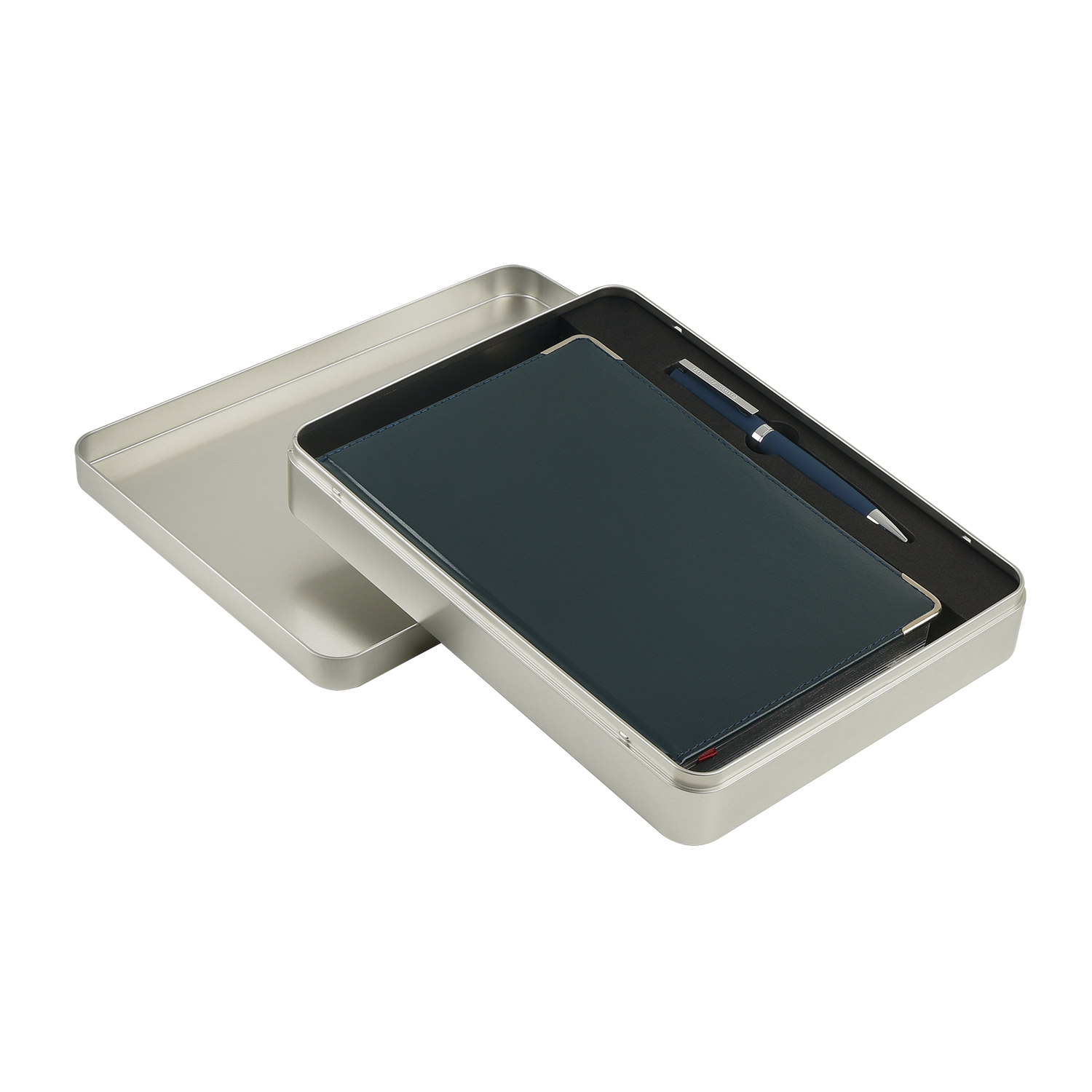НАБОР ПОДАРОЧНЫЙ ЕЖЕДНЕВНИК А5+ П/ДАТ. "IMPERIUM "(СИНИЙ) И РУЧКА "MILANO" В СЕРЕБР. МЕТАЛ.КОРОБКЕ