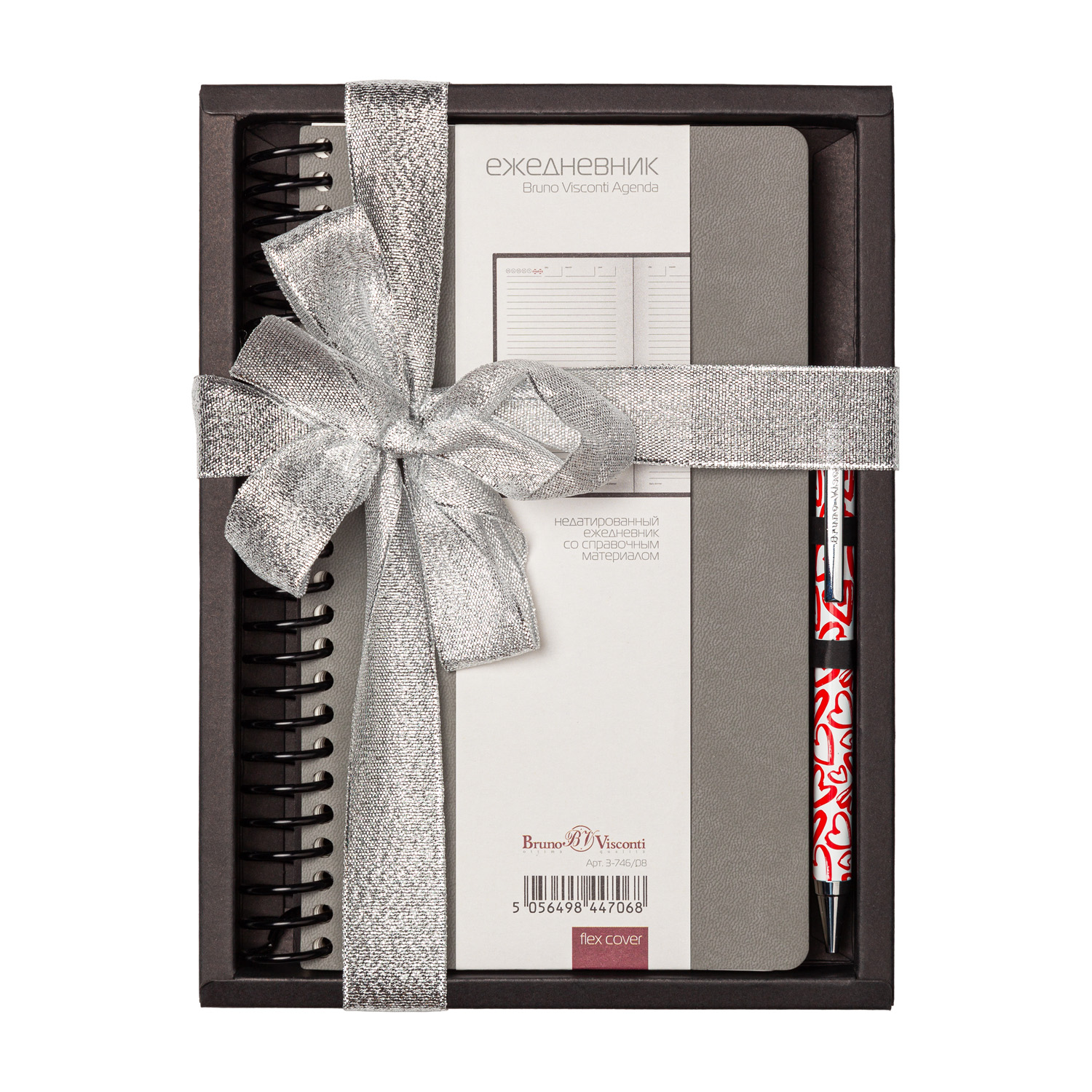 НАБОР ПОДАРОЧНЫЙ НА СПИРАЛИ, А5 "AGENDA" (СЕРЫЙ ЕЖЕДНЕВНИК И МЕТАЛЛ. РУЧКА)