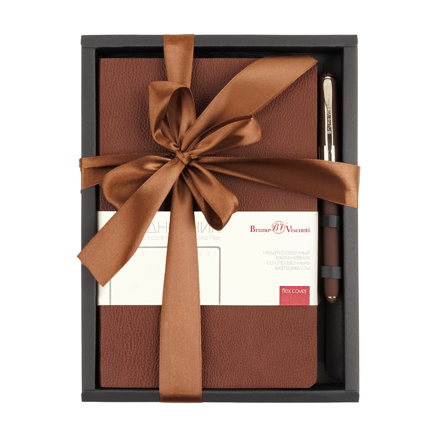 НАБОР ПОДАРОЧНЫЙ А5 "MEGAPOLIS LOFT COLOR" FLEX (КОРИЧНЕВЫЙ ЕЖЕДНЕВНИК И РУЧКА)