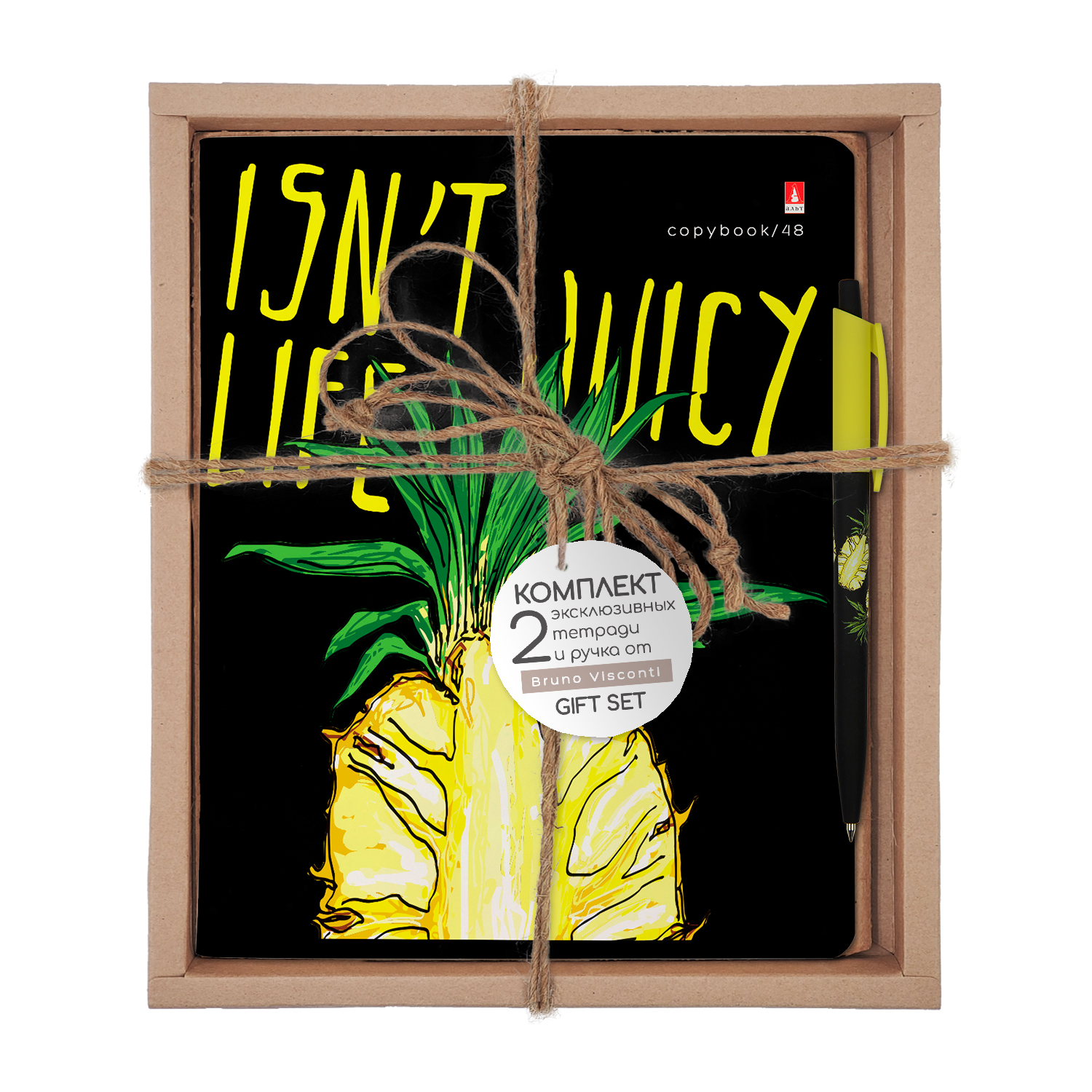НАБОР ПОДАРОЧНЫЙ "JUICY LIFE. Ананас" (ДВЕ ТЕТРАДИ И РУЧКА)