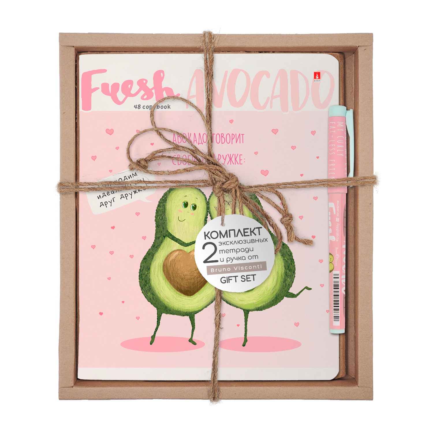 НАБОР ПОДАРОЧНЫЙ "Авокадо. Любовь" (ДВЕ ТЕТРАДИ И РУЧКА)