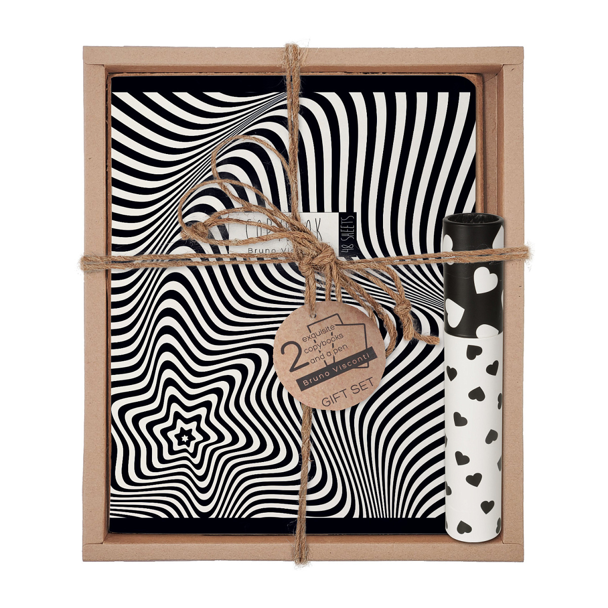 НАБОР ПОДАРОЧНЫЙ "BLACK&WHITE. Полоски" (две тетради и ручка в тубе)